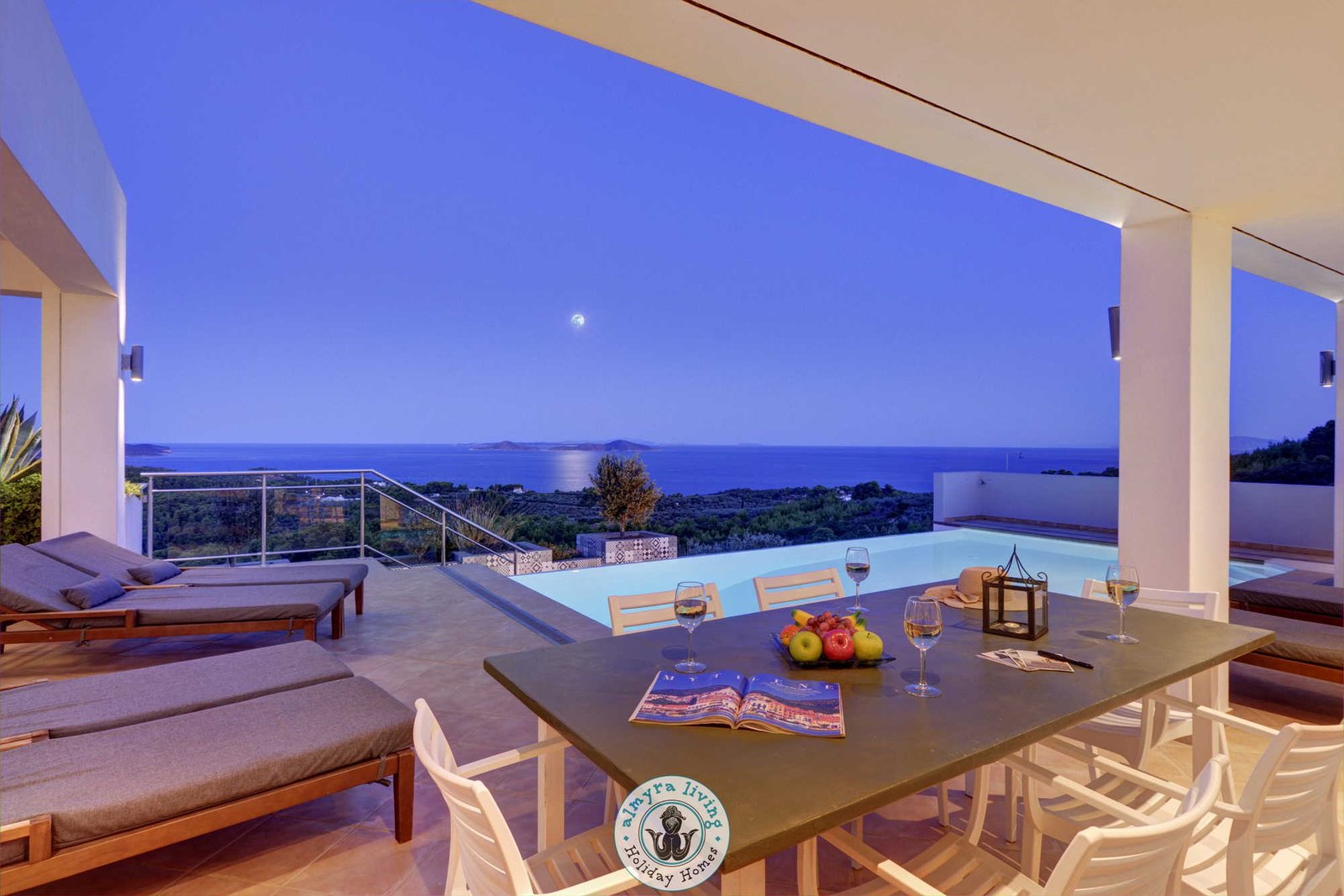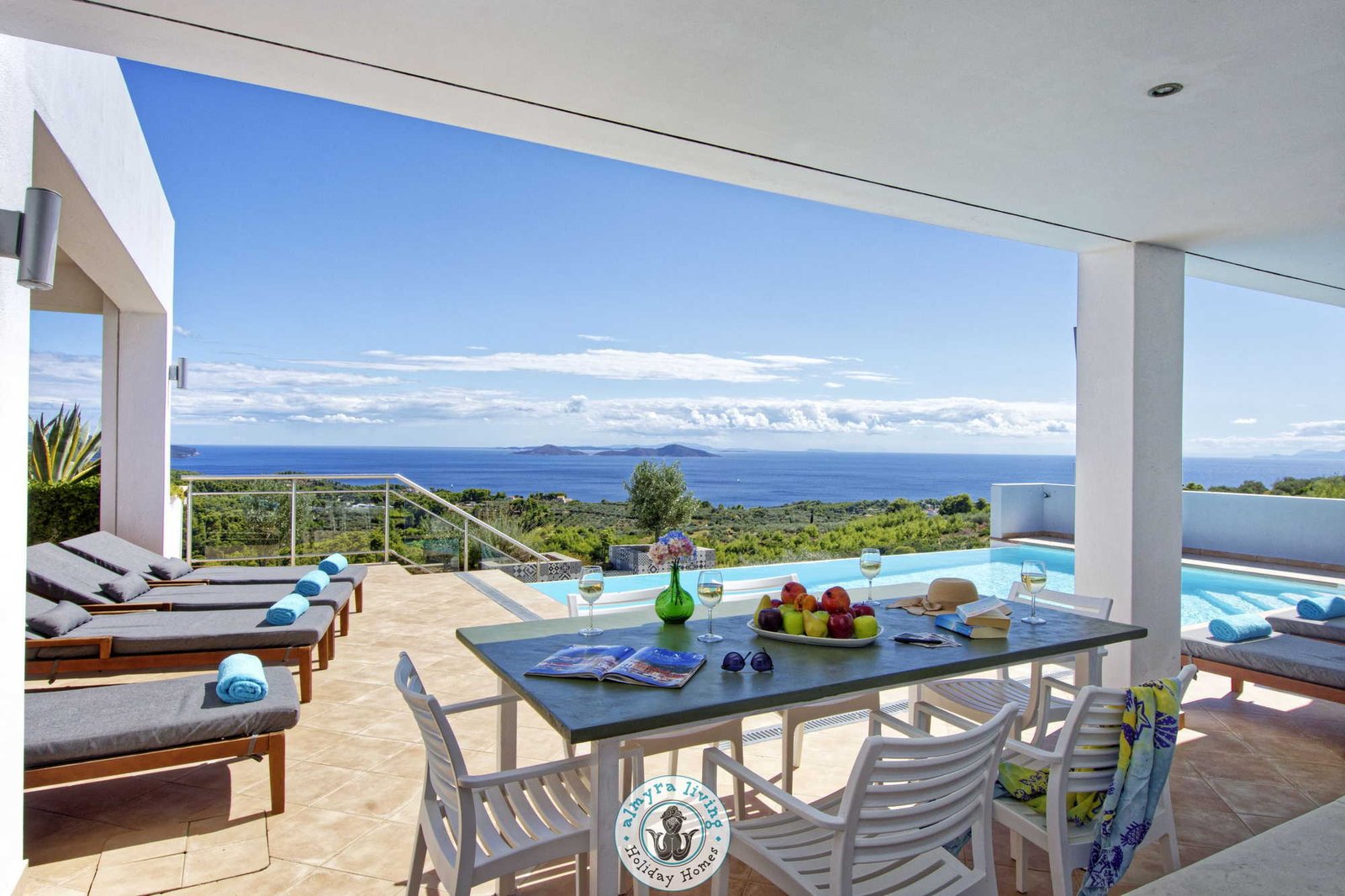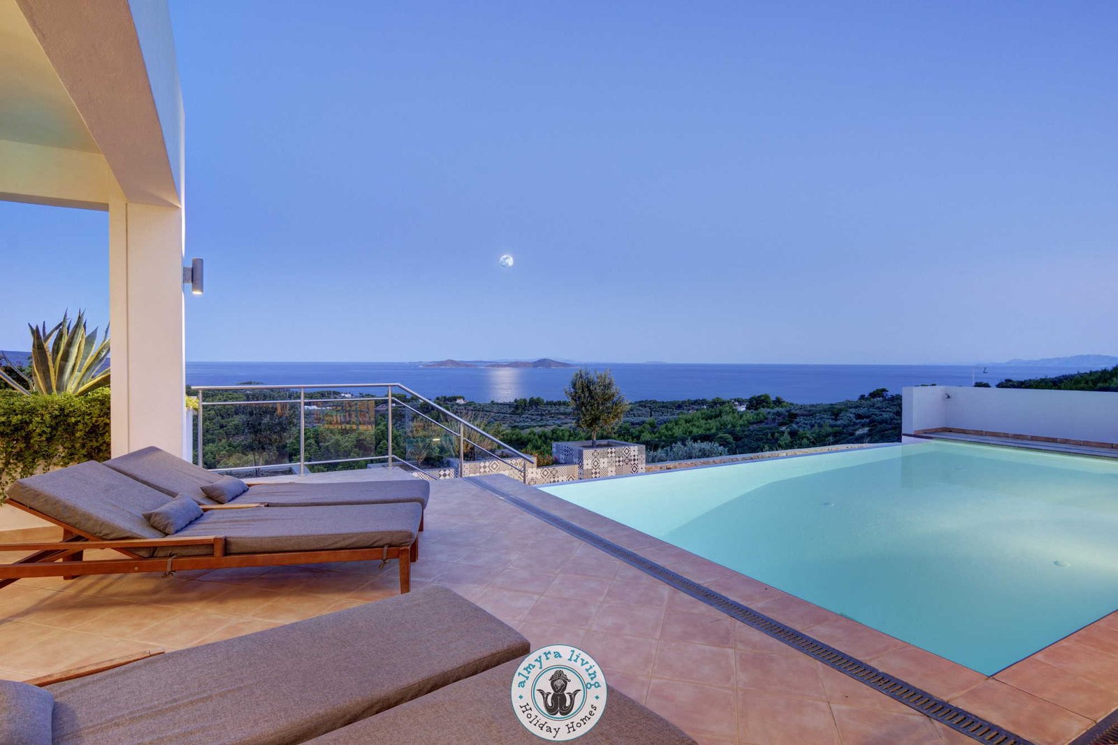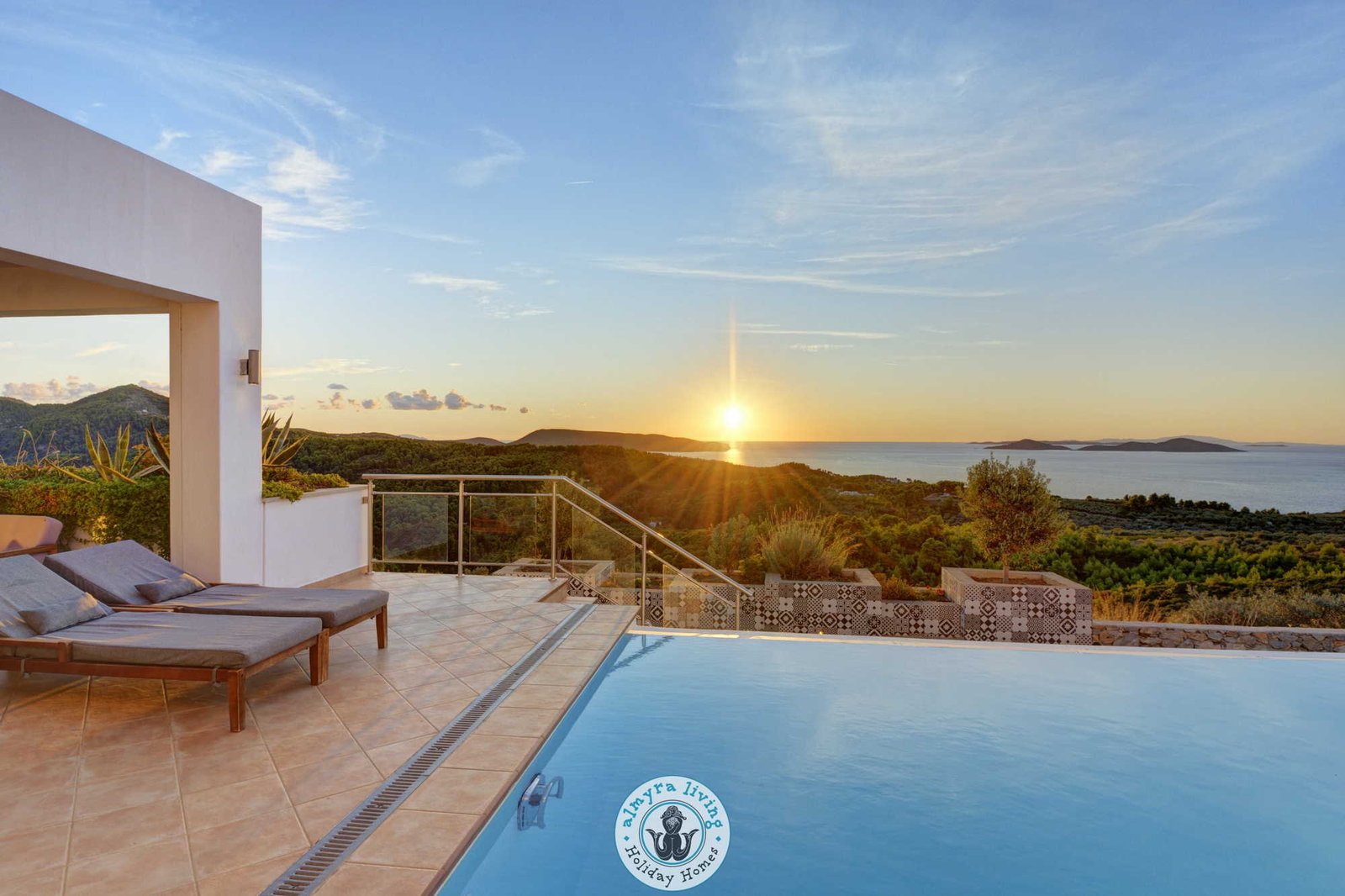 Nestled high on the hillsides of Alonissos, Villa Lyssiana is a spectacular family villa offering commanding 180-degree views of the shimmering Aegean Sea. Perfectly placed between the island’s beautiful beaches and the enchanting old town, this stylish, single-level villa is designed for comfort, elegance, and effortless island living.