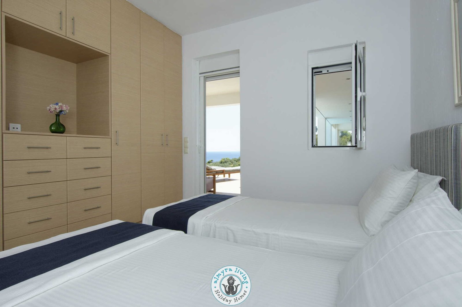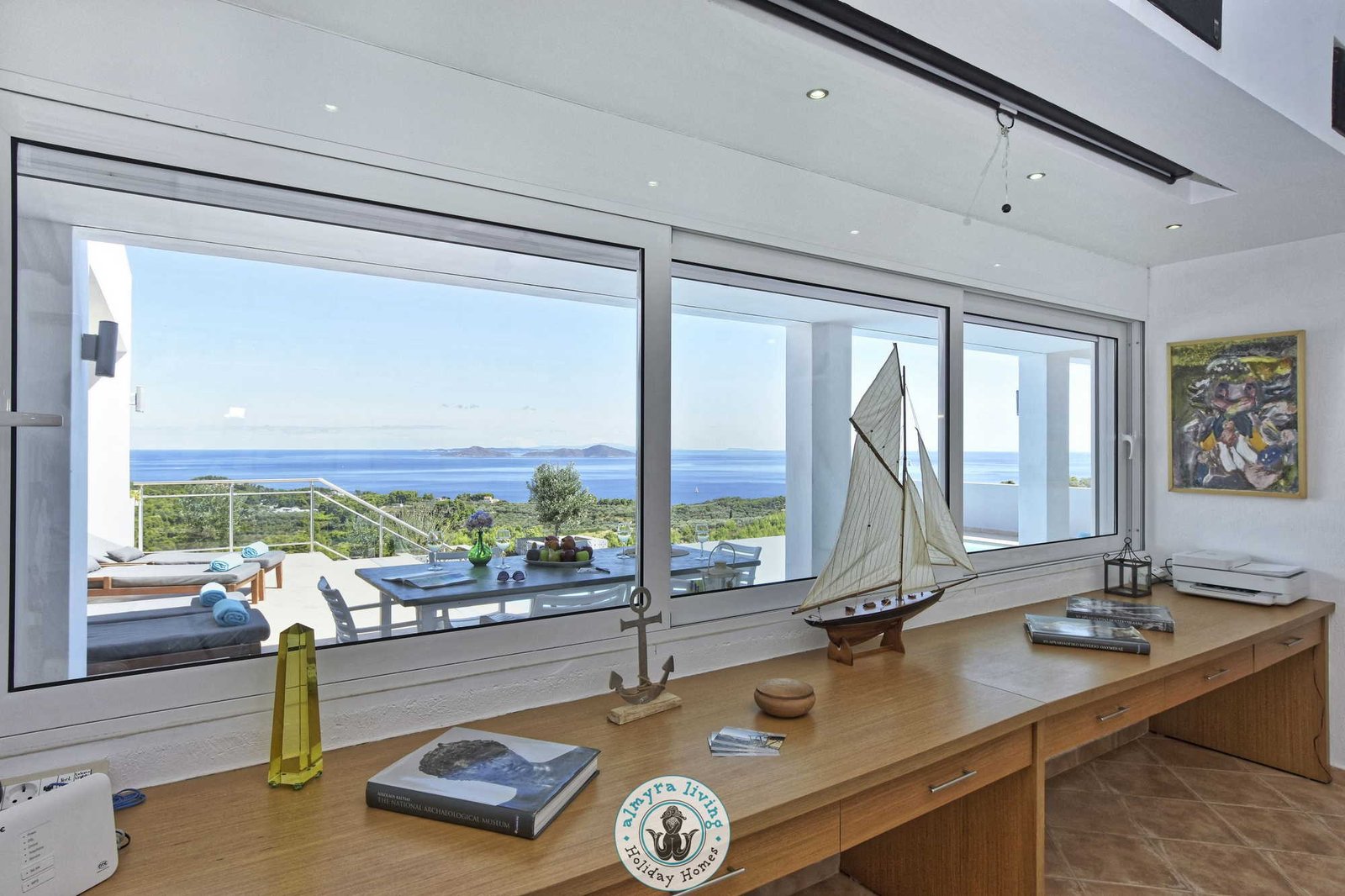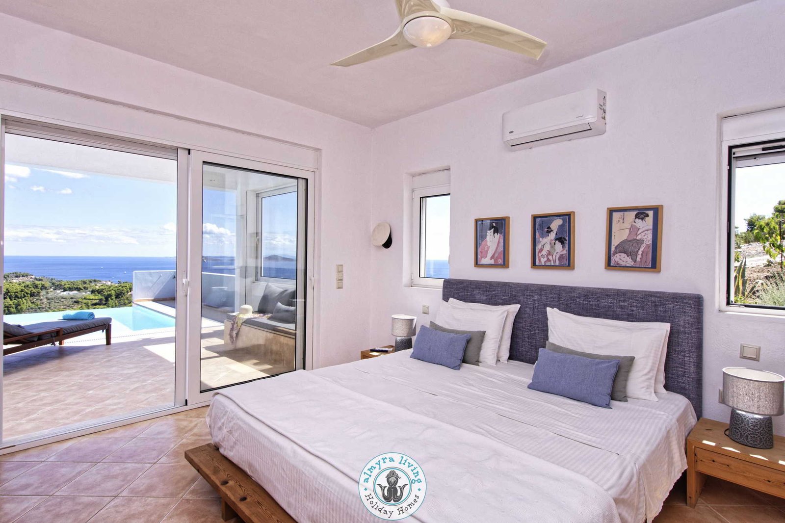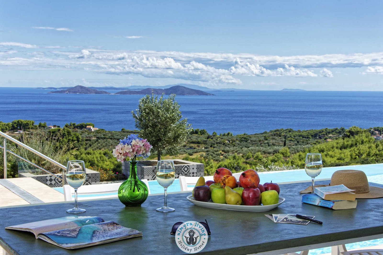 Nestled high on the hillsides of Alonissos, Villa Lyssiana is a spectacular family villa offering commanding 180-degree views of the shimmering Aegean Sea. Perfectly placed between the island’s beautiful beaches and the enchanting old town, this stylish, single-level villa is designed for comfort, elegance, and effortless island living.